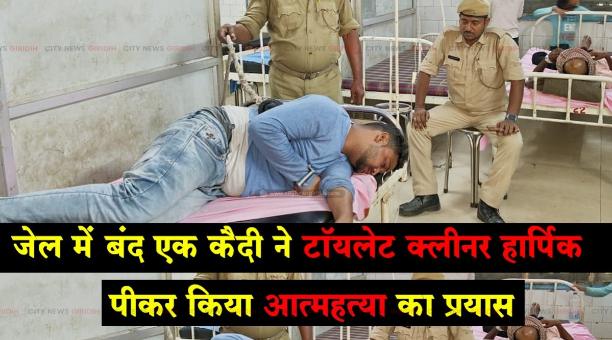 गिरिडीह सेंट्रल जेल में बंद एक कैदी ने सोमवार को टॉयलेट क्लीनर हार्पिक पीकर आत्महत्या का प्रयास किया। तबीयत बिगड़ने पर इसे इलाज के लिए सदर अस्पताल लाया गया।बताया गया की बरवाडीह निवासी मो जमाल का 22 वर्षीय पुत्र मो असवाद छेड़खानी मामले में एक वर्षों से सेन्ट्रल जेल में बंद था।सोमवार सुबह इसने अचानक आत्महत्या करने की नीयत से टॉयलेट साफ करने वाला हार्पिक का सेवन कर लिया। जिससे तुरंत ही कैदी की स्थिति बिगड़ गई और यह खून की उल्टी करने लगा। इसके बाद जेल के सुरक्षा कर्मियों ने इलाज के लिए सदर अस्पताल लाया। जहां इलाज चल रहा है। बताया गया की सुरक्षा कर्मियों की देखरेख में जनरल वार्ड में ईसे भर्ती किया गया है।