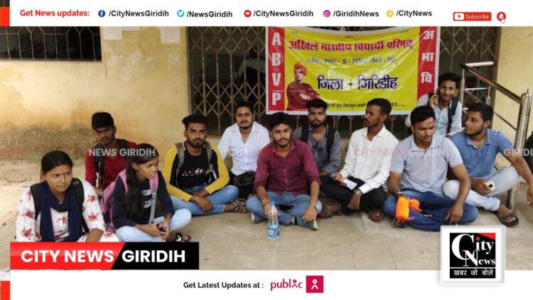अखिल भारतीय विद्यार्थी परिषद कॉलेज इकाई के द्वारा गिरिडीह कॉलेज गिरिडीह परिसर में सोमवार को प्रशासनिक भवन के गेट पर तालाबंदी कर नारेबाज़ी किया गया।बताया गया कि पिछले दिनों जारी स्नातक सेमेस्टर वन के परीक्षा परिणाम में त्रुटि है ,जिसके कारण अधिकतर विद्यार्थियों को रिजल्ट में प्रमोटेड कर दिया गया। अभाविप के उज्जवल तिवारी ने संबोधित करते हुए कहा कि पिछले दिनों स्नातक सेमेस्टर वन का रिजल्ट जारी किया गया है जिसमें अधिकतर विद्यार्थियों को प्रैक्टिकल एग्जाम में अनुपस्थित कर रिजल्ट प्रमोटेड कर दिया गया। जिसके लिए अभाविप ने परीक्षा परिणाम को सुधार हेतु आवेदन दे चुका था। उसके बावजूद भी विनोबा भावे विश्वविद्यालय द्वारा 10 दिन बीत जाने के बाद भी कोई पहल नहीं किया गया। तब जाकर विवश होकर अभाविप और छात्र छात्राओं ने कॉलेज के प्राचार्य गेट में तालाबंदी किया एवं पुनः प्रैक्टिकल एग्जाम लेकर विद्यार्थियों का रिजल्ट जारी करने की मांग की गई। हालाकी प्राचार्य के आश्वासन के बाद तालाबंदी हटाया गया। इस दौरान प्राचार्य डॉ. समीर सरकार ने आश्वासन देते हुए कहा कि सभी विद्यार्थी एडमिट कार्ड जमा करने के बाद उनका परीक्षा लिया जा सकता है। तालाबंदी कार्यक्रम में अभाविप के नगर मंत्री अक्षय कुमार, कॉलेज मंत्री सुमन चौधरी, शिवम कुमार, शुभम झा, प्रिया कुमारी, आरती कुमारी भारती कुमारी, बिट्टू देव, सागर कुमार, लक्ष्मण वर्मा ,सहित कई कार्यकर्ता मौजूद थे।