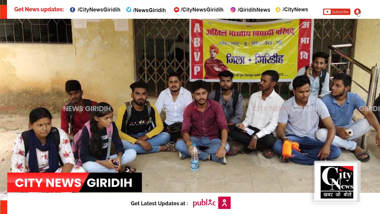 अखिल भारतीय विद्यार्थी परिषद कॉलेज इकाई के द्वारा गिरिडीह कॉलेज गिरिडीह परिसर में सोमवार को प्रशासनिक भवन के गेट पर तालाबंदी कर नारेबाज़ी किया गया।बताया गया कि पिछले दिनों जारी स्नातक सेमेस्टर वन के परीक्षा परिणाम में त्रुटि है ,जिसके कारण अधिकतर विद्यार्थियों को रिजल्ट में प्रमोटेड कर दिया गया। अभाविप के उज्जवल तिवारी ने संबोधित करते हुए कहा कि पिछले दिनों स्नातक सेमेस्टर वन का रिजल्ट जारी किया गया है जिसमें अधिकतर विद्यार्थियों को प्रैक्टिकल एग्जाम में अनुपस्थित कर रिजल्ट प्रमोटेड कर दिया गया। जिसके लिए अभाविप ने परीक्षा परिणाम को सुधार हेतु आवेदन दे चुका था। उसके बावजूद भी विनोबा भावे विश्वविद्यालय द्वारा 10 दिन बीत जाने के बाद भी कोई पहल नहीं किया गया। तब जाकर विवश होकर अभाविप और छात्र छात्राओं ने कॉलेज के प्राचार्य गेट में तालाबंदी किया एवं पुनः प्रैक्टिकल एग्जाम लेकर विद्यार्थियों का रिजल्ट जारी करने की मांग की गई। हालाकी प्राचार्य के आश्वासन के बाद तालाबंदी हटाया गया। इस दौरान प्राचार्य डॉ. समीर सरकार ने आश्वासन देते हुए कहा कि सभी विद्यार्थी एडमिट कार्ड जमा करने के बाद उनका परीक्षा लिया जा सकता है। तालाबंदी कार्यक्रम में अभाविप के नगर मंत्री अक्षय कुमार, कॉलेज मंत्री सुमन चौधरी, शिवम कुमार, शुभम झा, प्रिया कुमारी, आरती कुमारी भारती कुमारी, बिट्टू देव, सागर कुमार, लक्ष्मण वर्मा ,सहित कई कार्यकर्ता मौजूद थे।