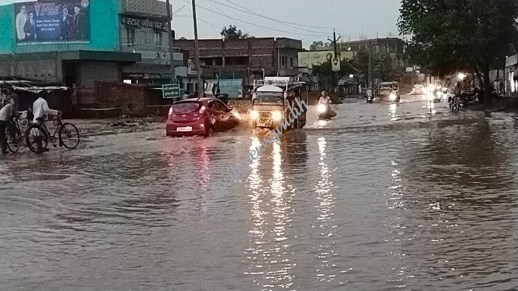 बीती रात तेज बारिश होने से तेलोडिह पेट्रोल पंप के पास काफी सारा पानी रोड पर ही जमा हो गया है। शनिवार को इससे राहगीरों को भारी परेशानी हुई।