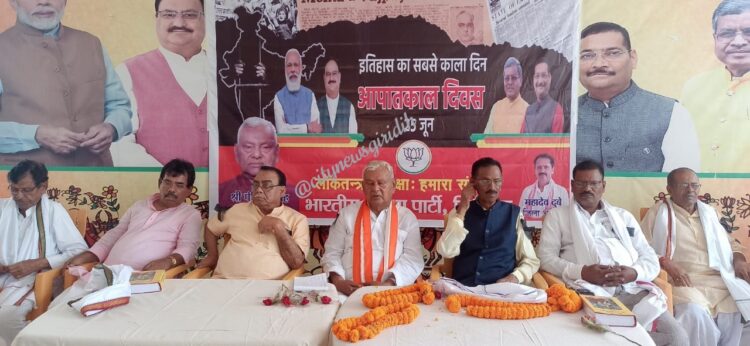 जिले के हरिचक स्थित भारतीय जनता पार्टी जिला कार्यालय में शनिवार को भाजपा की ओर से इमरजेंसी की बरसी को काला दिवस के रूप में मनाया गया।यहां सबसे पहले पंडित दीनदयाल उपाध्याय,श्यामा प्रसाद मुखर्जी,अटल बिहारी वाजपाई,की चित्र पर पुष्प अर्पित कर कार्यक्रम की शुरुआत की गई।मौके पर एक संगोष्ठी का आयोजन हुवा जिसकी अध्यक्षता जिलाध्यक्ष महादेव दुबे द्वारा किया गया।कार्यक्रम में मुख्य रूप से धनबाद के सांसद पी.एन सिंह,कोडरमा के पूर्व सांसद रवींद्र राय, जमुआ विधायक केदार हाजरा,भाजपा नेता निर्भय शहाबादी,लक्ष्मण स्वर्णकार,सुरेश साव,आपूर्व सिंह,चुन्नू कांत,छोटेलाल यादव, बाबूल प्रसाद गुप्ता आदि उपस्थित हुए। बताया गया कि 25 जून 1975 का दिन भारतीय इतिहास का वह दिन था, जब उस समय देश की तत्कालीन प्रधानमंत्री इंदिरा गांधी के आदेश पर देश मे आपातकाल लगाया गया। इसी को लेकर भारतीय जनता पार्टी की ओर से राज्य के विभिन्न केंद्रों में संगोष्ठी का आयोजन कर आज के दिन को काला दिवस के रूप में मनाया जा रहा है।कार्यक्रम में भाजपा के सुभाष चंद्र सिंहा,नवीन सिन्हा,मुकेश जालान,संजीत सिंह पप्पू, दीपक स्वर्णकार,मोतीलाल उपाध्याय,संजय सिंह,महिला नेत्री प्रो. विनीता कुमारी,शालिनी वैयश्कियार, कुसुम सिन्हा,उषा देवी, समेत भारी संख्या में बीजेपी के नेता व कार्यकर्ता उपस्थित थे।