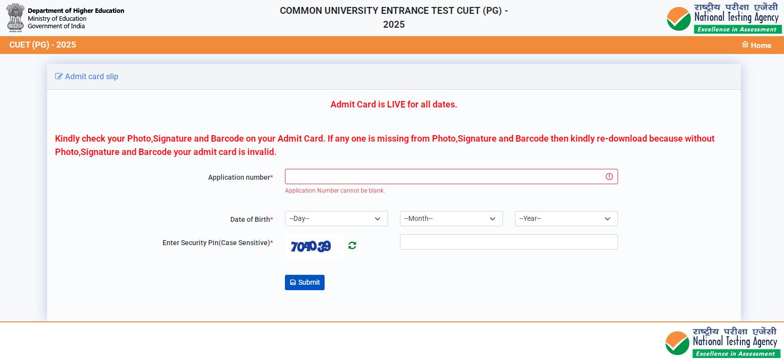 - होमपेज पर “CUET PG Admit Card 2025” के लिंक पर क्लिक करें।