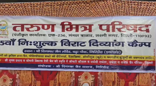 Giridih News: दिल्ली की सामाजिक संस्था तरुण मित्र परिषद ने मंगलवार को 12 बजे बड़ा चौक स्थित जैन मंदिर में 55 वां दिव्यांग शिविर का आयोजन किया। शिविर का उद्घाटन जिला समाज कल्याण पदाधिकारी स्नेहलता कश्यप के साथ जैन मंदिर के महामंत्री विजय सेठी, तरुण मित्र परिषद के महामंत्री अशोक जैन ने किया। वही शिविर को जिले के जरूरतमंद दिव्यांग के लिए महत्वर्ण बताते हुए स्नेहलता कश्यप ने कहा कि निश्चित तौर पर इसका पूरा फायदा वैसे लोगो को मिलेगा, जो आर्थिक रूप से सक्षम नहीं है। इधर शिविर में पौने दो सौ दिव्यांगो के रजिस्ट्रेशन की जानकारी देते हुए महासचिव अशोक जैन ने कहा कि यह शिविर दिल्ली की बिमला देवी की स्मृति में उनके परिवार के सदस्य कौशल देवी जैन और राकेश जैन के सहयोग से लगाया गया है। शिविर में दिल्ली से आए टेक्निकल टीम द्वारा दिव्यागों का नाप लिया गया। इसमें जिनके हाथ कटे हुए थे, पांव नहीं थे। उनके नाप लिए जा रहे थे और उन्हें कृत्रिम अंग टेक्निकल टीम द्वारा पहनाया जा रहा था। जबकि कान श्रवण यंत्र के जरूरतमंदों के बीच उपलब्ध कराया जा रहा था। खुद दिल्ली से आए कानों के डॉक्टर ऐसे लोगों का कान श्रवण शक्ति सुनकर उनके बीच कान श्रवण यंत्र वितरण कर रहे थे। शिविर में दिल्ली तरुण मित्र परिषद द्वारा एक-एक दिव्यांग के बीच उनके ज़रूरत को देखते हुए कृत्रिम अंग वितरण किया गया। इधर शिविर को सफल बनाने में अजय जैन, अशोक पांड्या, अजीत सेठी, महेश जैन की खास भूमिका रही।
