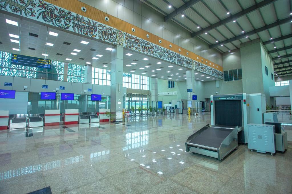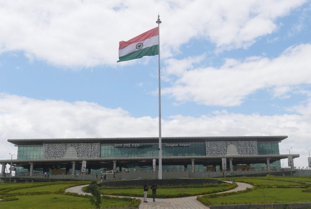 देवघर एयरपोर्ट के उद्घाटन के लिए प्रधानमंत्री नरेंद्र मोदी दिल्ली से निकल चुके है। एयरपोर्ट को भव्य तरीके से सजाया गया है। एयरपोर्ट के बाहर का नजारा जितना प्यारा है उतना ही अंदर का नजारा भी प्यारा है। यहाँ चारों तरफ लाइट लगायी गयी है। एयरपोर्ट के अंदर भी सुन्दर सुंदर कलाकृतियां एवं सजावट की गयी है। बता दें की नरेंद्र मोदी आज उद्घाटन के साथ ही देवघर को बड़ी सौगात देने वाले है। प्रधानमंत्री द्वादश ज्योतिर्लिंग बैद्यनाथधाम के विकास से जुड़ी योजनाओं का शिलान्यास और उद्घाटन करेंगे। योजनाओं की अनुमानित लागत लगभग 16,835 करोड़ है।