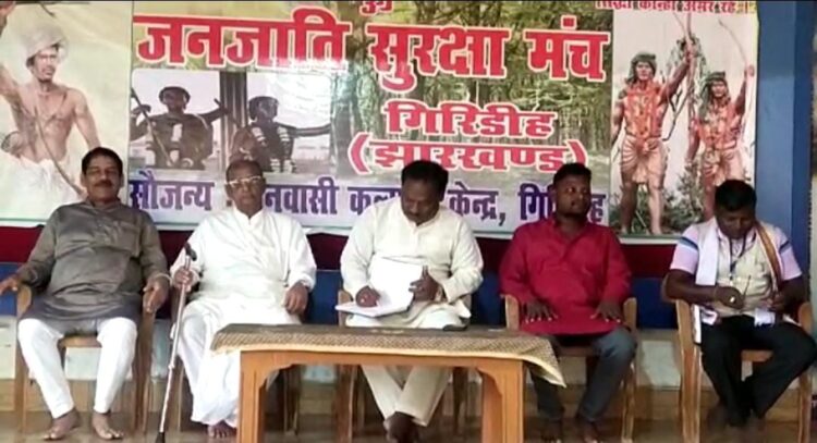 गिरिडीह, वनवासी कल्याण केंद्र के सौजन्य से जनजाति सुरक्षा मंच के बैनर तले धर्मानात्रित व्यक्तियों को अनुसूचित जनजाति की सूची से बाहर किया जाए वैसे व्यक्ति जिन्होंने धर्म परिवर्तन कर दोनों तरफ से लाभ ले रहे हैं वैसे लोगों को लेकर एक कानून बनाया जाए जिससे धर्म परिवर्तन करने के बाद भी एक ही तरह का लाभ उठा सके इन्ही सब मांगों को लेकर जनजाति सुरक्षा मंच के द्वारा भाभनटोली अंटा बांग्ला मैदान से एक रैली निकाल कर नगर भ्रमण करते हुए बरगंडा स्थित सरस्वती शिशु विद्या मंदिर के प्रांगण में सभा को संबोधित करते हुए संपन्न किया गया। इस कार्यक्रम में मुख्य अतिथि व विशिष्ट अतिथि के तौर पर जनजाति सुरक्षा मंच की प्रदेश संयोजक संदीप उरांव, नगर निगम के उपमहापौर प्रकाश सेठ, मनोज हेंब्रम ,बृजनंदन जी मौजूद हुए ।वही कार्यक्रम को सफल बनाने में जिला अध्यक्ष विनोद केसरी, सचिव अमित श्रीवास्तव, निशांत शर्मा , ग्रीष्म कुमार भगत, अमित रंजन, प्रवीण मिश्रा ,विद्याभूषण ,भुनेश्वर राय सहित कई आदिवासी समाज की महिला पुरुष शामिल थे।