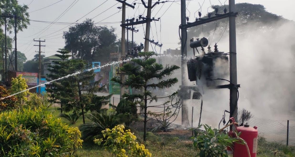 टुंडी रोड के मोहनपुर जेल के समीप स्थित रिलायंस पेट्रोल पंप के पास गुरुवार की दोपहर अचानक एक बिजली के ट्रांसफार्मर में आग लग गई। देखते ही देखते ट्रांसफार्मर से आग की तेज लपटे निकलने लगी।घटना से आस-पास के में अपरा-तफरी मच गई। स्थानीय लोगों ने तुरंत मामले की जानकारी दमकल विभाग और मुफ्फसिल थाना पुलिस को दी ।सूचना मिलते ही दमकल की टीम तुरंत घटना स्थल पर पहुंची और आग पर काबू पाया।जिसके बाद स्थिति सामान्य हुई।बताया गया कि समय रहते इसे काबू नहीं किया जाता तो कोई बड़ी घटना घट सकती थी।