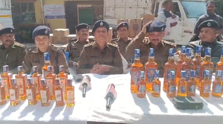 बेंगाबाद पुलिस ने अवैध तरीके से 119 पेटी लोड पिकअप वैन को जब्त किया है। मंगलवार को 2 बजे एसडीपीओ जीतवाहन उरांव ने बेंगाबाद थाना परिसर से प्रेस वार्ता कर इसकी जानकारी दी। पुलिस ने अवैध शराब मामले में दो आरोपी को गिरफ्तार भी किया है। जिसमें राजा शर्मा और विकास कुमार शामिल है। इस बाबत अनुमंडल पुलिस पदाधिकारी ने बताया कि पुलिस अधीक्षक को गुप्त सूचना प्राप्त हुई थी कि भारी मात्रा में अवैध शराब को बेंगाबाद थाना क्षेत्र से ले जाया जा रहा है। इसके बाद बेंगाबाद थाना प्रभारी के नेतृत्व में एक टीम गठित की गई जिसमें पुलिस अधिकारी और सशस्त्र बल शामिल थे। टीम ने अवैध शराब लोड पिकअप वैन को जब्त किया। इन्होंने बताया कि पुआल के नीचे छुपा कर शराब को खपाया जा रहा था। अंदेशा लगाया जा रहा है कि शराब को बिहार ले जाया जा रहा था। बाजार के मुताबिक शराब की कीमत 7 से 8 लाख रुपया बताई जा रही है। मौके पर बेंगाबाद थाना प्रभारी और और पुलिस अधिकारी मौजूद थे।