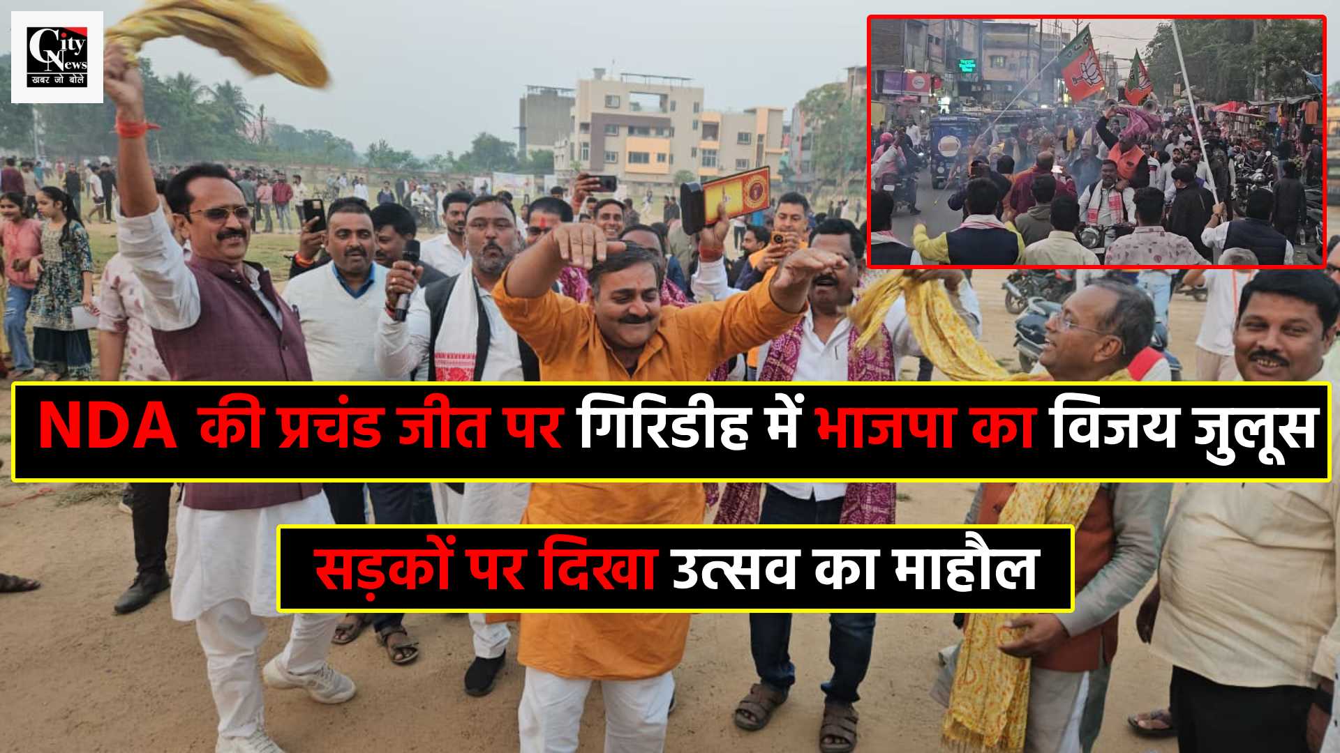 बिहार विधानसभा चुनाव में एनडीए की ऐतिहासिक और प्रचंड जीत के बाद गिरिडीह में खुशी की लहर दौड़ गई। शुक्रवार शाम करीब 5 बजे भारतीय जनता पार्टी के कार्यकर्ताओं और नेताओं ने सर्कस मैदान से भव्य विजय जुलूस निकाला। इस जुलूस में सैकड़ों की संख्या में भाजपाई शामिल हुए, जिन्होंने पूरे जोश और उत्साह के साथ जीत का जश्न मनाया।