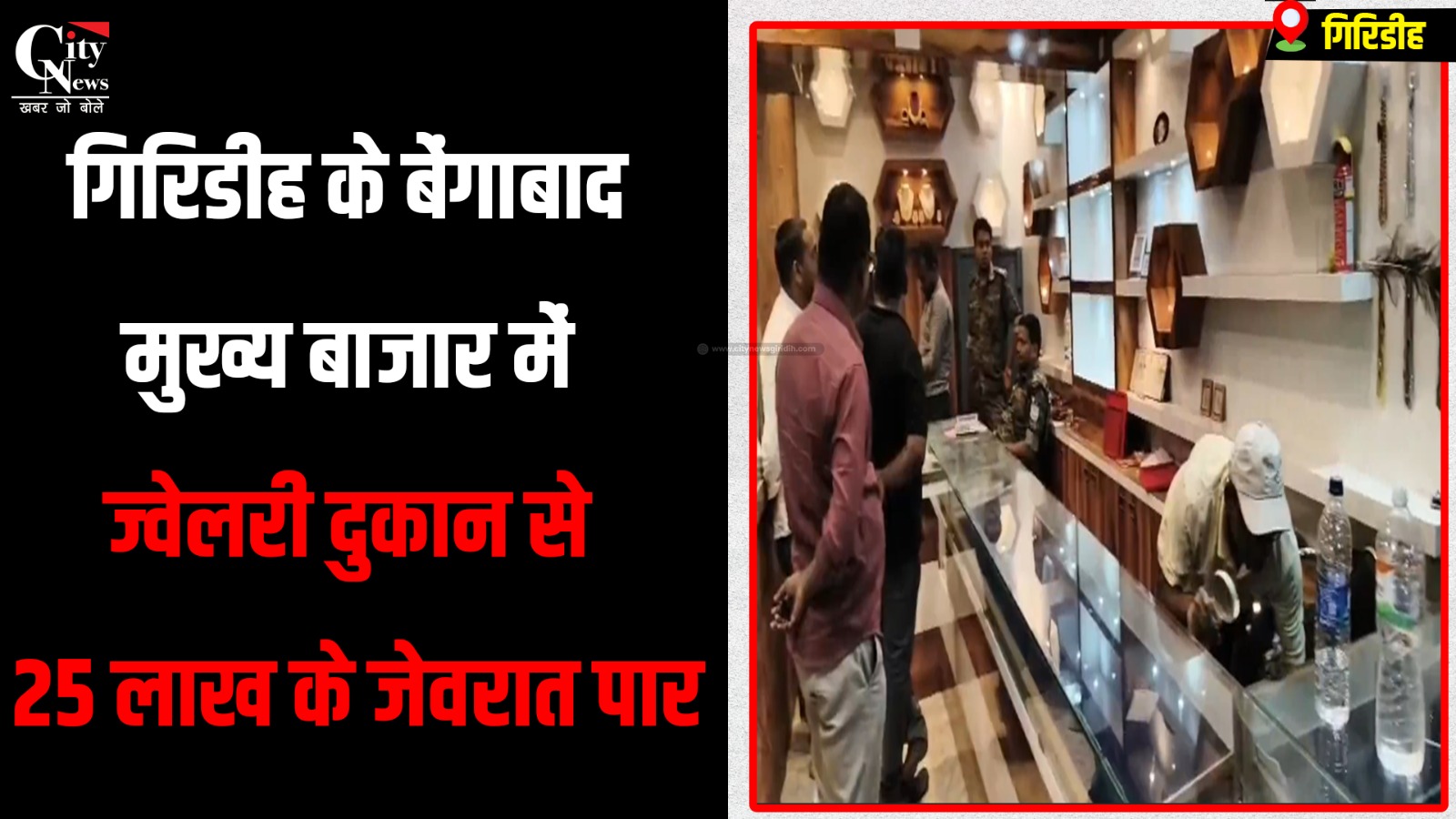 बेंगाबाद मुख्य बाजार में शुक्रवार देर रात चोरों ने एक ज्वेलरी दुकान में सेंधमारी कर बड़ी चोरी की घटना को अंजाम दिया। शनिवार 11 बजे दुकान संचालक ने जानकारी दी कि दुकान के पीछे की दीवार तोड़कर चोरों ने करीब बीस से पच्चीस लाख रुपए मूल्य की ज्वेलरी पर हाथ साफ किया। घटना के बाद से पूरे व्यापारिक वर्ग में भय और असुरक्षा का माहौल है। मामले को गंभीरता से लेते हुए बेंगाबाद पुलिस एक्शन मोड में नजर आ रही है। मौके पर फिंगर प्रिंट विशेषज्ञों की टीम पहुंच चुकी है और जांच-पड़ताल जारी है।पुलिस आसपास के क्षेत्रों में भी छानबीन कर रही है और घटनास्थल के आसपास लगे सीसीटीवी फुटेज की जांच की संभावना भी जताई जा रही है। स्थानीय व्यापारियों ने सुरक्षा व्यवस्था बढ़ाने की मांग की है।