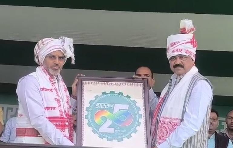 झारखंड स्थापना दिवस के रजत जयंती वर्ष पर शनिवार को शहर के ऐतिहासिक झंडा मैदान में भव्य समारोह का आयोजन किया गया। पूरा मैदान झारखंडी संस्कृति, परंपरागत साज-सज्जा और रंग-बिरंगी थीम से सजा नजर आया।