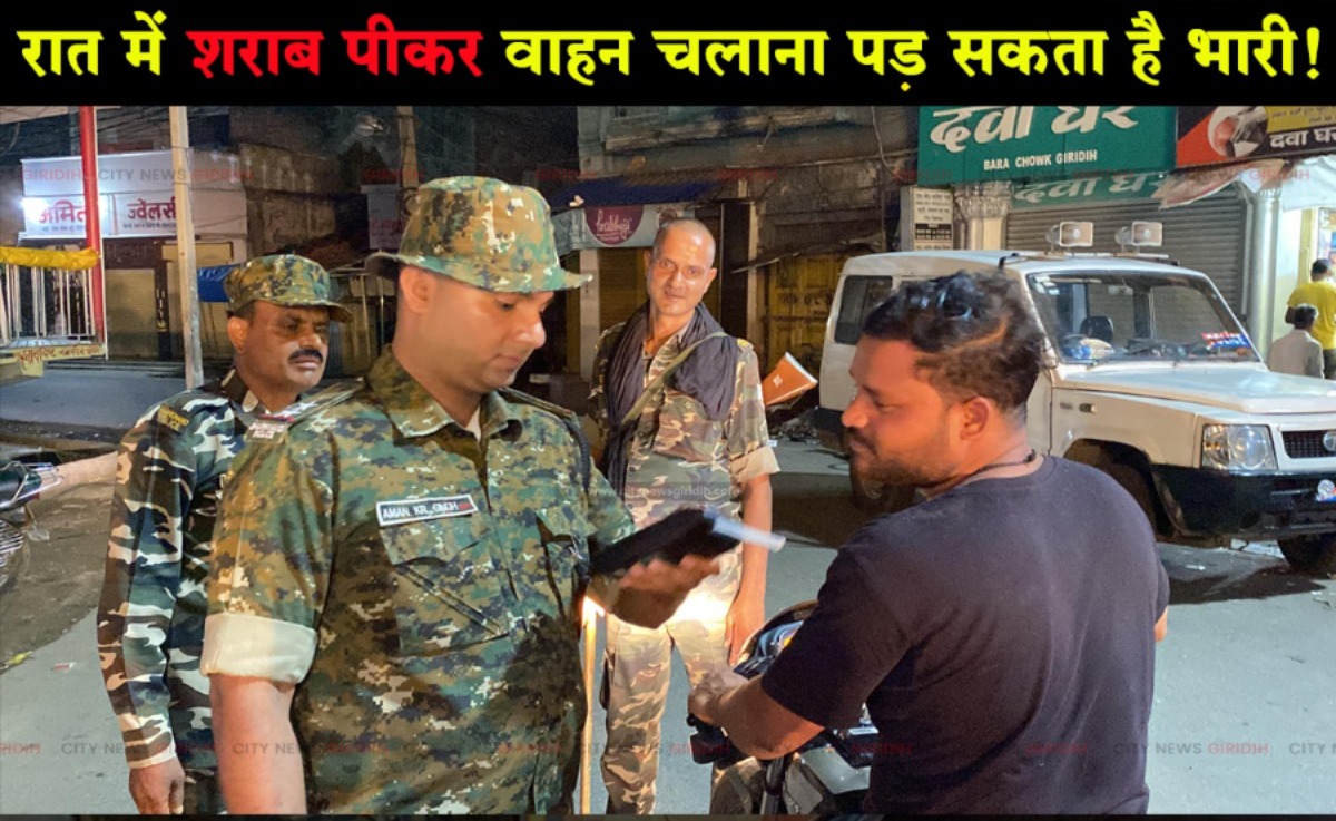 अब रात मे शराब पी कर वाहन चलाने वाले हो जाएं सावधान, क्योंकि गिरिडीह पुलिस ने बढ़ती सड़क दुर्घटना को देखते हुए एक नई अभियान का शुभारंभ कर दिया है। इस अभियान के तहत वाहन चालकों को ब्रेथ एनालाइजर टेस्ट से गुजरना होगा। यदि आप दोषी साबित हुए तो आप पर कड़ी कार्रवाई हो सकती है।