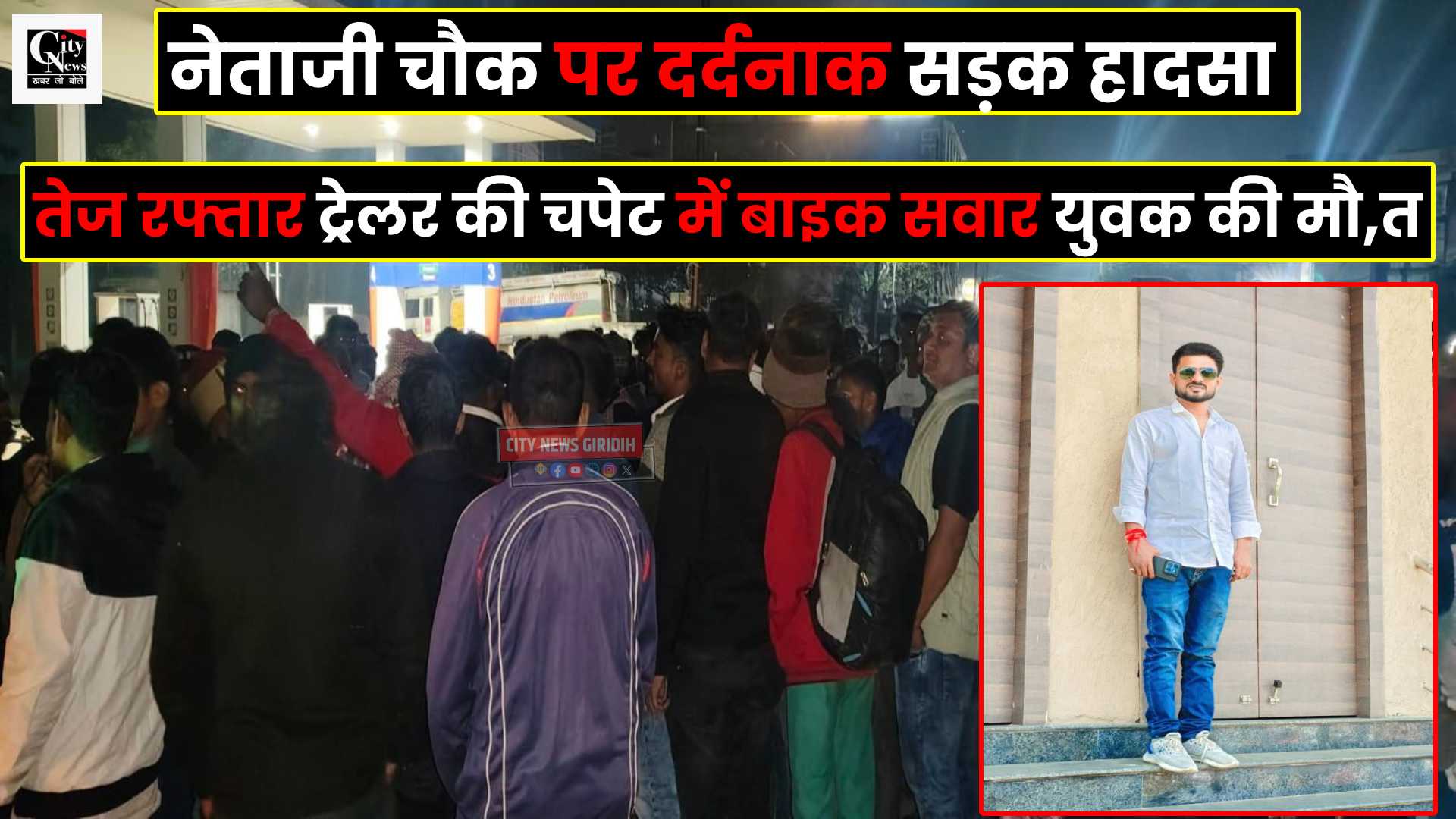 गिरिडीह। नगर थाना क्षेत्र के नेताजी चौक के समीप मंगलवार की शाम एक भीषण सड़क हादसे में अलकापुरी निवासी रोहित सिंह राठौर (28) की मौके पर ही मौ,त हो गई। तेज रफ्तार ट्रेलर ने उनकी बाइक को जोरदार टक्कर मार दी, जिसके बाद रोहित एक ट्रक के नीचे जा दबे। वह अपनी आखिरी सांस तक बाहर नहीं निकल सके।