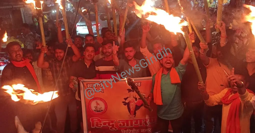 गिरिडीह: राजस्थान के उदयपुर में कन्हैया लाल की निर्मम हत्या को विरोध में हिन्दू जागरण मंच ने शनिवार सैकड़ों की संख्या में कार्यकर्ता झंडा मैदान से आक्रोश प्रदर्शन अपने हाथों में मशाल जुलूस लेकर पद यात्रा करते हुए टावर चौक पहुंचकर जमकर प्रदर्श किया। इस दौरान सभी कार्यकर्ताओं ने एक सुर में कहा कि जिहादि हत्यारों को जल्द से जल्द गिरफ्तार कर फ़ासी की सजा दी जाए। साथ ही हिंदू जागरण मंच ने राजस्थान सरकार से कन्हैया लाल के परिवार वालों को उचित मुआवजे ओर एक परिवार को सरकारी नौकरी देने की मांग की। इस बाबत मंच के सदस्यों ने बताया कि जिस प्रकार इस्लामिक कट्टरता द्वारा हिंदुओं को टारगेट करके पूरे देश में हत्या की जा रही है इसको लेकर हिंदू समाज में काफी आक्रोश है। इन हत्यारों को सरकार जल्द से जल्द से जल्द गिरफ्तार फांसी के तख्ते पर चढ़ाने का काम करें। मौके पर जिलाध्यक्ष शिव शक्ति शाहा, सुरेश साहू रितेश कुमार मुकेश पांडे योगेश मिश्र मुन्ना रजवार रितिक चंद्रवंशी उज्जैन गोस्वामी सोनू गुप्ता चंदन पांडे सागर पांडे समेत सैकड़ों की संख्या में मंच के लोग शामिल थे।