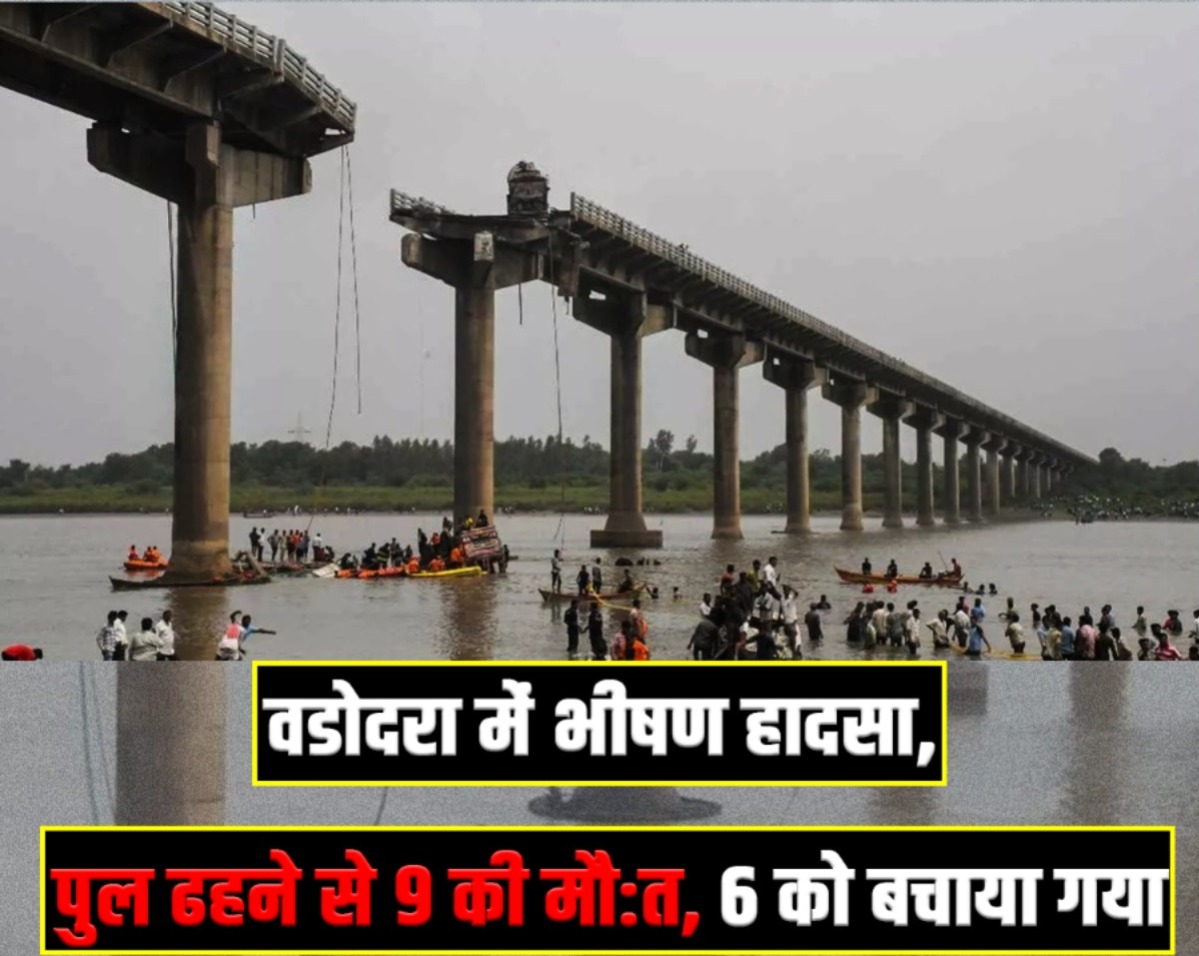 गुजरात के वडोदरा में बुधवार सुबह एक बड़ा हादसा हुआ, जब महिसागर नदी पर स्थित गंभीरा पुल का एक हिस्सा अचानक ढह गया। हादसे में दो ट्रक, एक वैन और एक कार समेत कुल चार वाहन नदी में गिर गए। अब तक 9 लोगों की मौत की पुष्टि हो चुकी है, जबकि 6 लोगों को सुरक्षित बचा लिया गया है। रेस्क्यू ऑपरेशन अभी भी जारी है। मुख्यमंत्री ने उच्च स्तरीय जांच के आदेश दिए हैं और सड़क एवं भवन विभाग को ठोस कार्रवाई के निर्देश दिए हैं। स्थानीय प्रशासन और राहत दल मौके पर मौजूद हैं। हादसा सुबह करीब 7:30 बजे हुआ, जब कई वाहन पुल पार कर रहे थे।