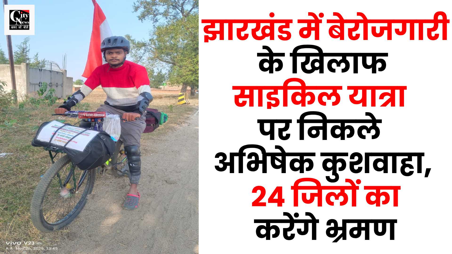 झारखंड में बढ़ती बेरोजगारी और युवाओं के पलायन के मुद्दे को उठाने के लिए रामगढ़ जिले के चैनपुर निवासी अभिषेक कुशवाहा पूरे राज्य की साइकिल यात्रा पर निकले हैं। रोजगार को लेकर सरकार की चेतना जगाने के उद्देश्य से अभिषेक ने साइकिल पर तिरंगा बांधकर रामगढ़ से यात्रा शुरू की है। बुधवार दोपहर 2 बजे वह देवघर जाने के क्रम में बेंगाबाद पहुंचे, जहां उन्होंने बताया कि वे राज्य के सभी 24 जिलों का भ्रमण साइकिल से करेंगे।