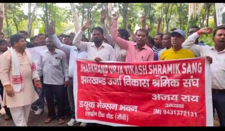 Ranchi News : झारखंड ऊर्जा विकास श्रमिक संघ के द्वारा किया गया प्रदर्शन