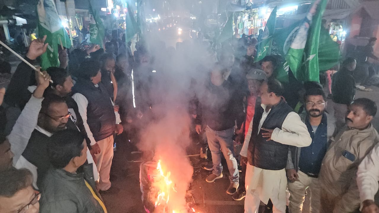 भाजपा के प्रदेश अध्यक्ष बाबूलाल मरांडी द्वारा हेमंत सोरेन को भगोड़ा सीएम कहे जाने के विरोध में झामुमो जिला समिती ने सोमवार को टॉवर चौक पर बाबूलाल मरांडी का पुतला फूका। झामुमो के सभी नेता कार्यकर्ताओं बस स्टेंड के नीचे स्थित झामुमो कार्यालय से मार्च निकालकर भाजपा मुर्दाबाद का नारा लगाते हुए टॉवर चौक पर पहुंची। यहां प्रथम मुख्यमंत्री और भाजपा के प्रदेश अध्यक्ष बाबूलाल मरांडी का पुतला दहन किया। इस बाबत पार्टी के जिला अध्यक्ष संजय सिंह ने कहा कि बाबूलाल मरांडी ने मुख्यमंत्री हेमंत सोरेन को भगोड़ा कहा है। जिसका हम सभी निंदा करते है। कहा की हेमंत सोरेन को राज्य की जनता ने चुनकर सीएम पद के निर्वाचित किया है। लेकिन जिस समय यह सरकार बनी थी उसी समय से गिराने का प्रयास किया जा रहा है। केन्द्र सरकार के इशारे पर ईडी लगातार आदिवासी मुखिया को तंग कर रही है। लेकिन यह कभी सफल नहीं होगा। मौके पर अजीत कुमार पप्पू सुमन सिन्हा प्रदोष कुमार अभय सिंह शाहनवाज अंसारी टूना सिंह रॉकी सिंह बृजमोहन तुरी सहित कई कार्यकर्ता मौजूद थे।
