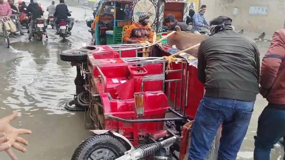 पचम्बा रेलवे अंडरपास के गड्ढे में एक टोटो पलट जाने के कारण शुक्रवार शाम 5 बजे को काफी लंबा जाम लग गया। शाम में एक टोटो कुछ सवारी और समान लेकर गिरिडीह से जमुआ की ओर जा रहा था जो रेलवे अंडरपास के नीचे पहुंचते ही गड्ढे में पलट गया। जिसे काफी मसक्कत के बाद निकाला जा सका। तब तक काफी देर तक जाम लगा रहा। ज्ञात को कि यह रोड गिरिडीह से जमुआ, कोडरमा और देवघर तक जाने वाली मुख्य सड़क है ,जो पचम्बा रेलवे अंडरपास के पास वर्षों से जर्जर अवस्था मे है और प्रतिदिन यहां घण्टों तक जाम की स्थिति बनी रहती है। लगातार यहां पर आने जाने वाले वाहन दुर्घटना का शिकार होते हैं ।लेकिन प्रशासन की ओर से इस अंडरपास को बनाने की दिशा में कोई सार्थक पहल नही किया जा रहा है। जिसके कारण लोगों को काफी परेशानी झेलनी पड़ रही है।
