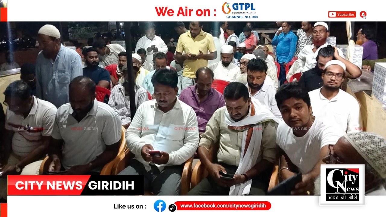 पचम्बा थाना में गुरुवार शाम मुस्लिम समुदाय के नुमाइंदों के साथ गिरीडीह ASP हरिस बिन जमा ने एक बैठक की। जिसमे पचम्बा थाना क्षेत्र के सभी इस्लामिक अंजुमन के सदर सिकरेटरी, मानिंद बुद्धिजीवी, मस्जिद के इमामों के साथ बात चीत कर शहर में शांतिपूर्ण शोहर्द कायम रखने हेतू रणनीति बनाई गई।इस दौरान एएसपी हरिस बिन जमा ने कहा कि सभी प्रमुख लोग अपने अपने मुहल्ले में लोगों को जागरूक करते हुए शोसल मीडिया से बचने की इत्तेला करें।हाल ही में रांची में हुई हिंसा का कारण भी शोसल मीडिया ही बताया जा रहा है।इसलिए सभीलोग उसपर ध्यान न देते हुए कल शांतिपूर्ण तरीके से जुम्मे की नमाज़ अदा करें।कोई भी किसी स्थान पर भीड़ भाड़ न लगाएं, सभी शांति पूर्वक नमाज अदा कर के अपने अपने अपने घर को चले जाएं।इस बैठक में मुख्य रूप से गिरीडीह एएसपी हरीश बिन जमा ,पचम्बा थाना इंस्पेक्टर अनिल कुमार, पचम्बा थाना के वर्तमान थाना प्रभारी अवधेश कुमार, एसआई अभिमन्यु,इस्माईल मरांडी,करहरबारी मुखिया प्रतिनिधि मुमताज अंसारी,वार्ड पार्षद प्रतिनिधि सिराज अंसारी सहित कई सदर व सेक्रेटरी मौजूद रहे।