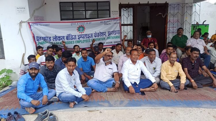 झारखंड लोकल बॉडीज इंप्लाइज फेडरेशन के आह्वान पर समूचे राज्य भर में विभिन्न जिलों के निकायकर्मी सहित नगर निगम कर्मियों अपनी 5 सूत्री मांगों को लेकर हड़ताल पर चले गए हैं। इसी कड़ी में जिले के भी निकाय कर्मी महामंत्री अशोक कुमार सिंह के नेतृत्व में मंगलवार से निगम परिसर में अनिश्चितकालीन धरना पर बैठ गए है। इस दौरान हड़ताल कार्यक्रम की अध्यक्षता फेडरेशन के जिला मंत्री लखन हरिजन और संचालन साबिर अंसारी कर रहे है। इस दौरान अपनी मांगों को लेकर निगम कर्मियों ने राज्य सरकार पर जमकर बरसे। इस बाबत हड़ताल को संबोधित करते हुए अशोक सिंह ने कहा कि कई बार सरकार से निगम कर्मियों के मांगों को लेकर वार्ता की गई लेकिन सरकार द्वारा वादाखिलाफी की गई। उन्होंने कहा कि कई बार लिखित समझौता होने के बाद भी निकाय कर्मियों की मांगों पर ध्यान नहीं दिया गया। महासंघ के नेता श्री सिंह ने कहा कि विगत कई वर्षों से नगर निगम कर्मचारी अपनी विभिन्न मांगों को लेकर आंदोलन करते आ रहे हैं। इस दौरान सरकार के द्वारा कई बार कर्मचारियों की मांग को पूरा करने का आश्वासन भी दिया गया। लेकिन कर्मचारियों की मांग अभी तक अधूरी है इसलिए कर्मचारियों ने हड़ताल करने का निर्णय लिया है। मिर्तुंजय सिंह,लखन हरिजन,शंभू सिंह,श्रीकांत यादव,सुभाष शर्मा,विकाश यादव,आकाश सिंह ,राजा हाड़ी,निशांत वर्मा,रोहित सिंह,मोहन वर्मा ,बबलू हाड़ी सहित कई नगर निगम कर्मी हड़ताल पर बैठे हुए है।