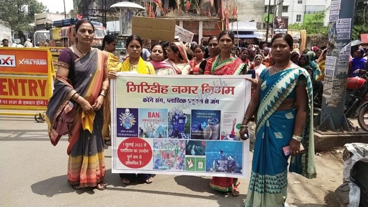 नगर निगम के उप नगर आयुक्त के निर्देशानुसार सीआरपी कर्मी ने शनिवार को नगर भ्रमण रैली कर प्लास्टिक मुक्त अभियान को सफल बनाने के लिए लोगों को जागरूक किया गया। सभी महिलाएं क्षेत्र के विभिन्न चौक चौराहों के दुकानदारों और राहगीरों को घर से निकलते वक्त थैला लेकर चलने के लिए जागरूक किया गया। साथ ही ठेला व दुकानदारों को 75 माइक्रोन से कम के प्लास्टिक को उपयोग में नहीं लाने का निर्देश दिया गया। इस बाबत बताया गया कि दीनदयाल अंत्योदय योजना-राष्ट्रीय शहरी आजीविका मिशन वन, पर्यावरण एवं जलवायु मंत्रालय, भारत सरकार द्वारा उपयोग के लिए प्रतिबंध लगा दिया गया है। प्लास्टिक के उपयोग से कई तरह की बीमारी फैलते है साथ ही किसी कारणवश जानवर निगल लेते हैं तो उनकी मौत हो जाती है। इसके अलावा प्रदूषण पर भी इसका बुरा असर पड़ता है इसी के तहत एक जागरूकता रैली धरियाडीह से बड़ा चौक होते हुए टावर चौक में समापन किया गया मौके पर सीआरपी निर्मला देवी, निखत जहां, कुंती साहू, कंचन सिंह ,रचना सिंह सहित कई सीआरपी कर्मी मौजूद थे।