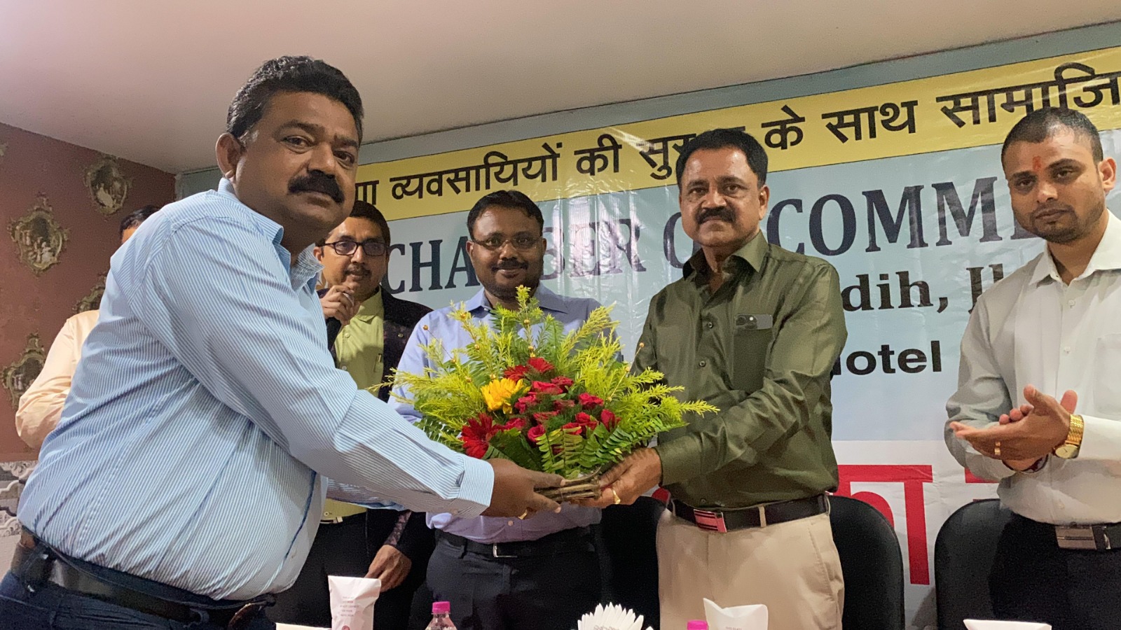 गिरिडीह के होटल ऑर्बिट मे चैम्बर ऑफ़ कॉमर्स एंड इंडस्ट्रीज़ की ओर से पूजा पंडाल समितियों को सर्टिफिकेट और मोमेंटो देकर सम्मानित किया गया। इस कार्यक्रम में मुख्य अतिथि के रूप मे विधायक सुदिवय कुमार सोनू के साथ संगठन के मेम्बर राहुल बर्मन,विकास गुप्ता,अरविंद कुमार,गोपाल भदानी के साथ तमाम पूजा पंडाल समिति के लोग उपस्थित रहे।