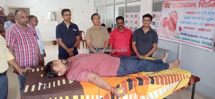 गिरिडीह: प्रधानमंत्री नरेंद्र मोदी के आह्वान पर डाक विभाग, भारत सरकार की ओर से दिनांक 17 सितंबर से 1 अक्टूबर तक स्वच्छता पखवाड़ा के रूप में मनाया जा रहा है। जिसमें अलग-अलग तिथियों को अलग-अलग कार्यक्रम आयोजित किए जा रहे हैं । बताया गया कि इसी के तहत 24 सितंबर से 25 सितंबर तक गिरिडीह प्रधान डाकघर में दो दिवसीय रक्तदान शिविर का आयोजन किया गया है। प्रथम दिन शनिवार को 12 डाक कर्मियों ने अपनी कीमती लहू का दान दिया। इस बाबत डाक अधीक्षक उत्तम कुमार सिंह ने बताया कि इस कार्यक्रम को सफल बनाने में सदर हॉस्पिटल के ब्लड बैंक के इंचार्ज डॉक्टर सोहेल अख्तर का महत्वपूर्ण योगदान रहा है। उनके सार्थक सहयोग एवं पहल की वजह से यह कार्यक्रम अच्छे से सफल हो पा रहा हैं। डाक अधीक्षक श्री सिंह ने कहा कि इस कैंप के माध्यम से डाक विभाग लोगों के बीच में यह संदेश फैलाना चाहती है कि प्रत्येक आमजन को रक्तदान करना चाहिए जिससे जरूरत के समय किसी की जिंदगी को बचाया जा सकता है। रक्त दान देने वाले कर्मियों में दीपक कुमार, सुमन कुमार, रविंद्र कुमार यादव, मो. फैयाज अंसारी, अमित कुमार, मनोज कुमार, जितेन्द्र कुमार गुप्ता, नारायण चौधरी, दशरथ प्रसाद, संतोष कुमार सिंह आदि शामिल थे।