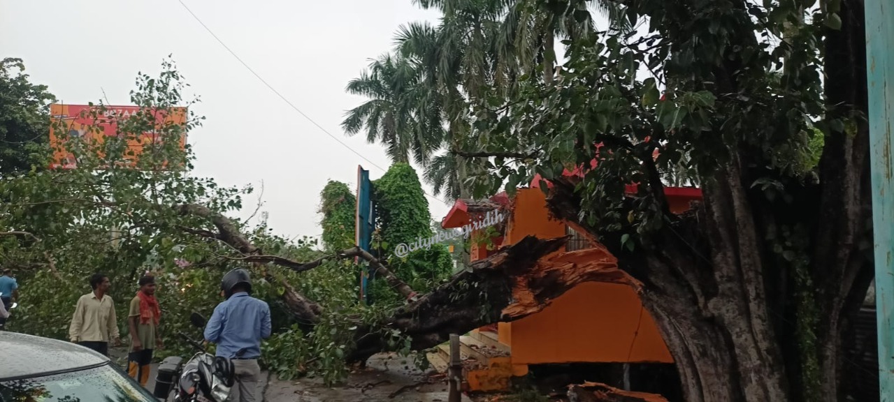 गिरिडीह बरगंडा स्थित नया पूल बजरंग बली मंदिर के समीप पीपल के एक विशालकाय वृक्ष टहनी टूटकर गिर गयी। जिस कारन यातायात बाधित हो गया। टहनी के रास्ते पर गिर जाने से लोगों को आवागमन में दिक्कत होने लगी जिसकी वजह से ट्रैफिक जाम हो गया। घटना की सुचना नगर थाना में दी गयी। सुचना पाते ही एस आई किशन कुमार मौके पर पहुंचे और जे सी बी की मदद सर पेड़ की टहनी को रास्ते से हटाया और जाम खत्म किया गया। बता दें की कुछ दिन पूर्व भी यहाँ ऐसी घटना घाट चुकी है। स्थानीय लोगों की मांग है कि जल्द से जल्द इस वृक्ष को कटा जाए ताकि भविष्य में ऐसी घटना न घटे।