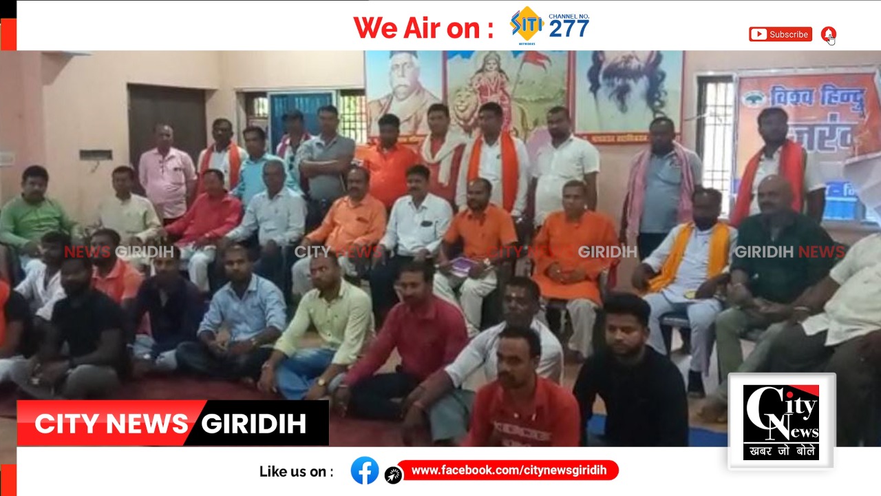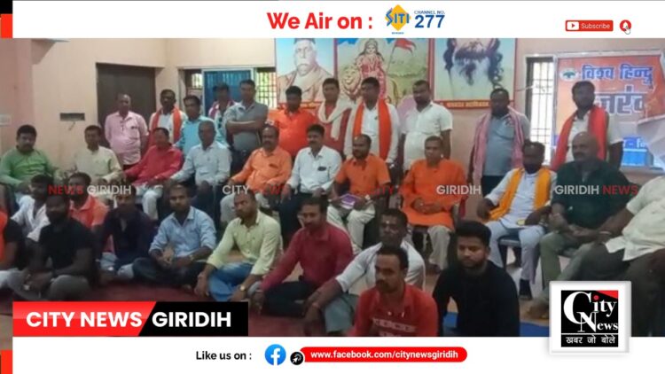 गिरिडीह संघ कार्यालय में मंगलवार को विश्व हिंदू परिषद बजरंग दल का जिला बैठक जिला अध्यक्ष रामकिशोर शरण की अध्यक्षता में संपन्न हुआ जिसका संचालन जिला मंत्री निरंजन कुमार ने किया मुख्य अतिथि के रूप में उपस्थित हुए मनोज चंद्रवंशी जी कार्यक्रम में 15 जुलाई से चल रहे संगठन विस्तार पर विशेष चर्चा किया गया साथ ही निर्णय लिया गया की आगामी 15 अगस्त तक चलने वाले संगठन विस्तार में प्रत्येक पंचायत स्तर पर विश्व हिन्दू परिषद बजरंग दल समिति का विस्तार करने का निर्णय लिया गया साथ ही आगामी 11 अगस्त को रक्षाबंधन में दुर्गा वाहिनी एवं मातृ शक्ति की माताएं बहनें सफाई कर्मी , स्वास्थ्य कर्मी, पुलिस प्रशासन सेना एवं कोविड 19 के समय फ्रंट लाइन वर्कर के रूप में कार्य करने वाले लोगों को रक्षा सूत्र बांध कर बधाई देंगी तो वहीं प्रत्येक वर्ष की भांति 14 अगस्त को अखंड भारत संकल्प दिवस मनाने का निर्णय लिया गया जो प्रत्येक प्रखंड एवं पंचायत स्तर पर मनाया जाएगा साथ ही 18 अगस्त से 24 अगस्त तक विश्व हिन्दू परिषद स्थापना दिवस मनाया जाएगा जो जिला एवं प्रखंड के साथ ही प्रत्येक पंचायत में मनाया जाएगा इस बैठक में मुख्य रूप से उपस्थित रहे विभाग गौरक्षा प्रमुख सह जिला पालक अजय कुमार वर्मा, धर्म प्रसार परावर्तन प्रांत प्रमुख अनूप यादव, जिला संरक्षक प्रदीप भगत, देवघर विभाग संगठन मंत्री कौलेश्वर टुडू , जिला संगठन मंत्री देवीलाल मुर्मू, जिला संयोजक रितेश पाण्डेय, जिला मठ मंदिर प्रमुख रविशंकर पाण्डेय, सीताराम हिन्दू, विहिप उपाध्यक्ष भरत साहू, जिला मिलन केंद्र प्रमुख ईश्वर पंडित, नगर अध्यक्ष रवींद्र स्वर्णकार, कोषाध्यक्ष अनिल चंद्रवंशी,गाण्डेय विहिप अध्यक्ष शंकर मंडल, बिरनी प्रखंड मंत्री बालेश्वर साव, सरिया प्रखंड मंत्री दीपू वर्णवाल,जमुआ विहिप अध्यक्ष पवन कुमार, आशीष कुमार, देवरी विहिप अध्यक्ष विकास कुमार, नगर उपाध्यक्ष कुन्दन केशरी, पुरूषोत्तम कुमार, कृष्ण कुमार स्वर्णकार,पियुष कुमार, समेत काफी संख्या में विहिप बजरंगदल कार्यकर्ता उपस्थित थे